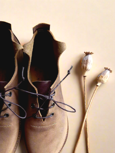 Laced ankle boot with curly top edge detailing for a fabulous woodland feel every time you pop you them on. Inspired by beechmasts, these are every day, everywhere short boots constructed with only one seam (a smooth centre back seam). Ridiculously comfortable, once on, you might forget you are wearing them.