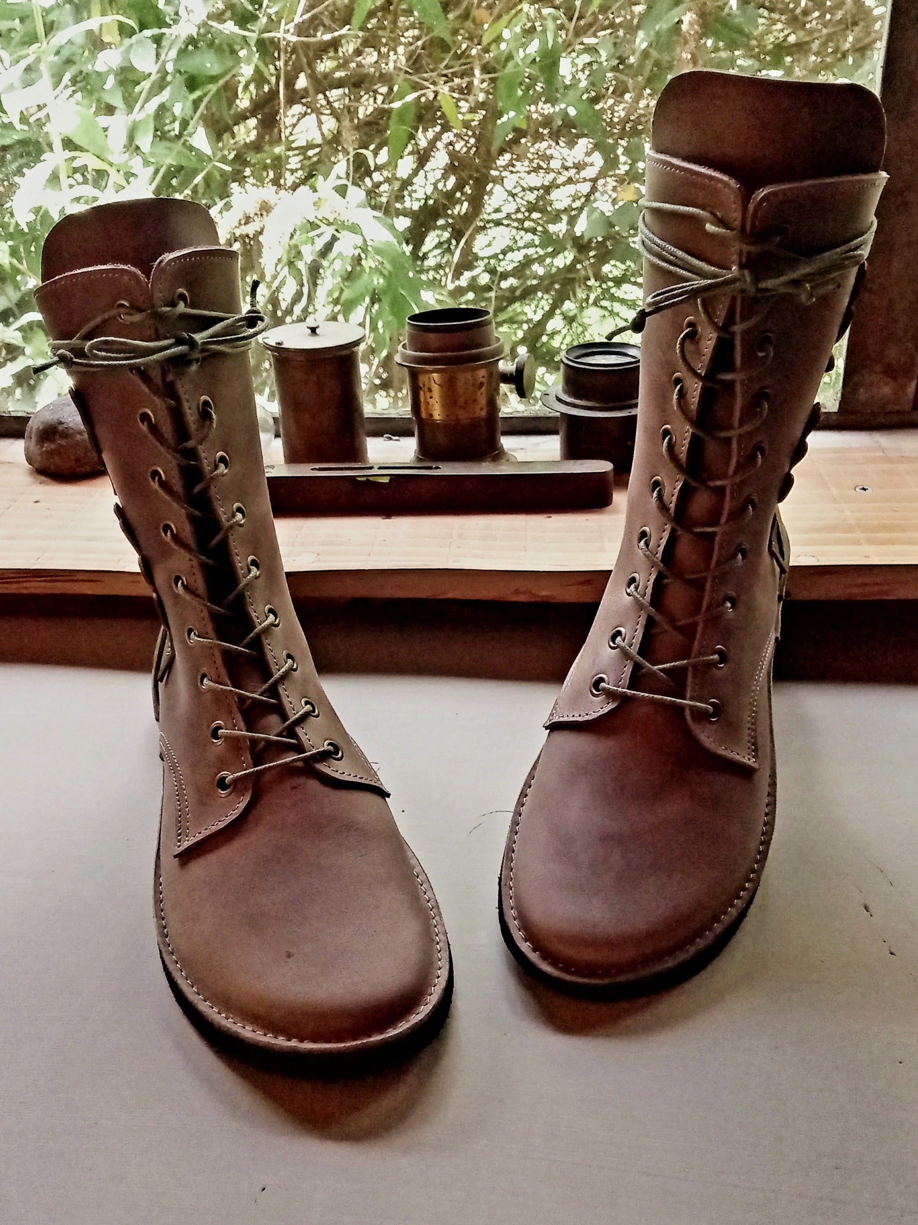 All Dulcie May footwear is designed and made by me, Ren, in my woodland studio. I have been making shoes, boots, and bags for decades, working entirely by hand using vintage sewing machines and traditional techniques.