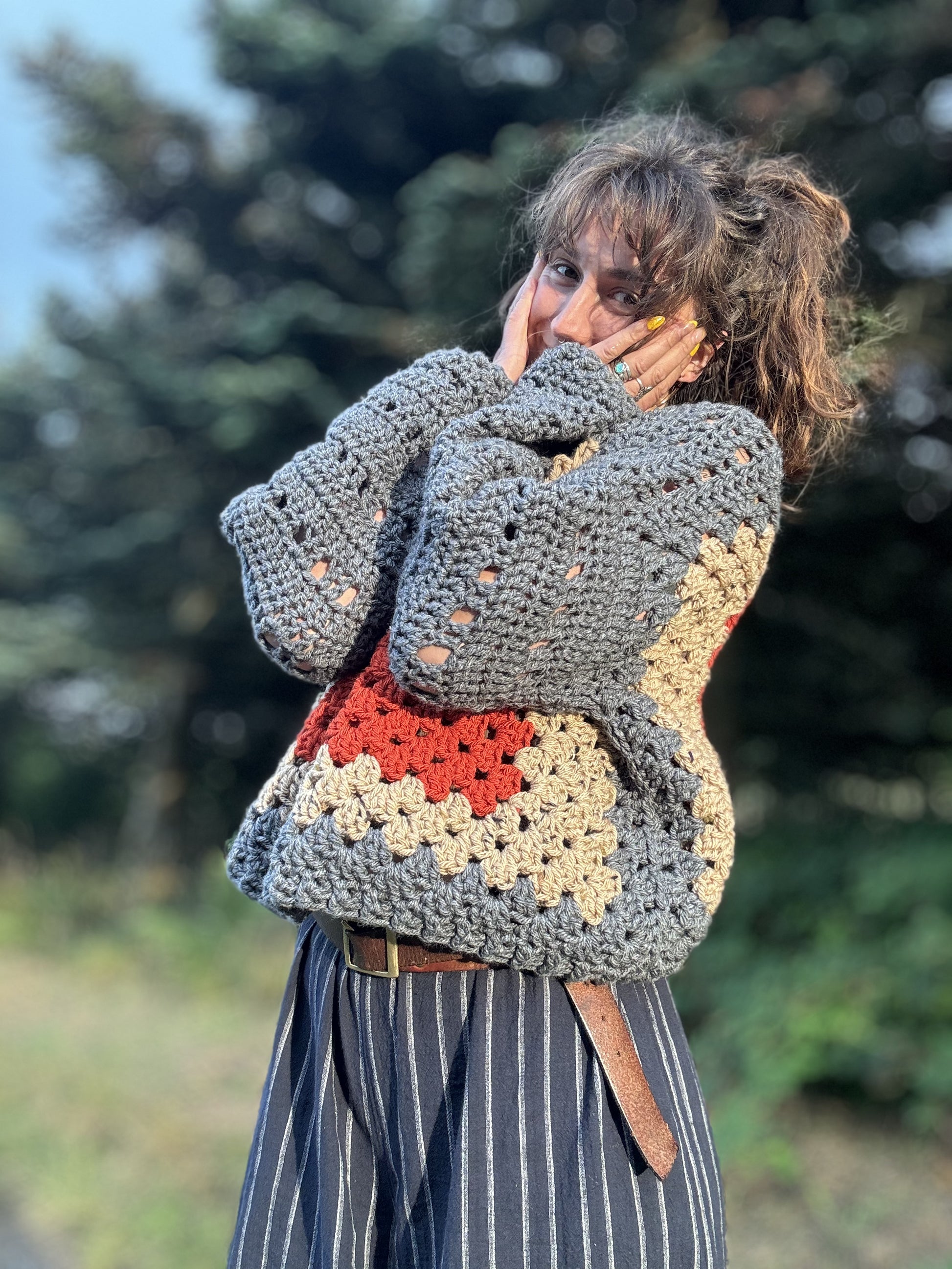 SIZING - Chest: across 25"/ Length: shoulder to hem 19" / Suitable for UK 8 - 18. Woollens are stretchy. Last image shows the Tilda style modelled.