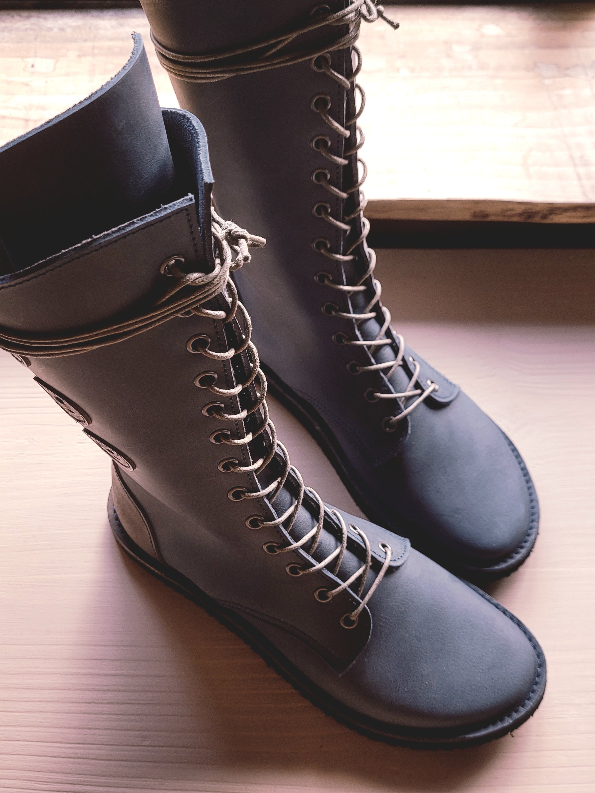 All Dulcie May footwear is designed and made by me, Ren, in my woodland studio. I have been making shoes, boots, and bags for decades, working entirely by hand using vintage sewing machines and traditional techniques.