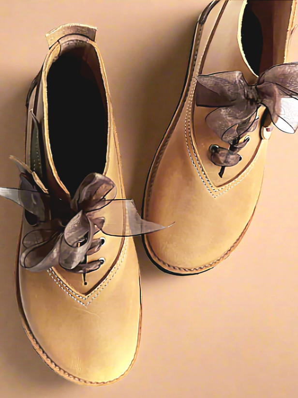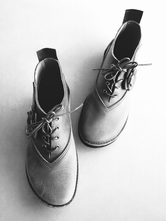 All Dulcie May footwear is designed and made by me, Ren, in my woodland studio. I have been making shoes, boots, and bags for decades, working entirely by hand using vintage sewing machines and traditional techniques.